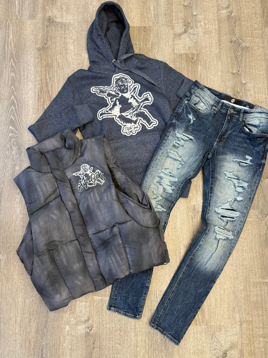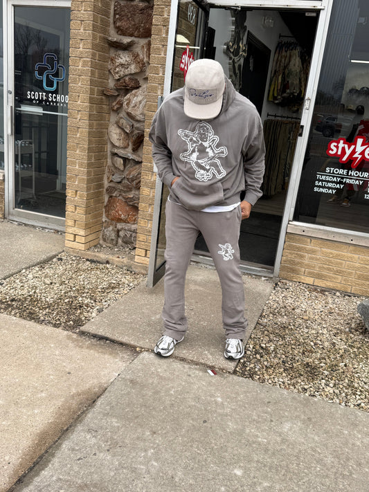StyleGods Angel Pullover Stacked Jogging Suit - Grey