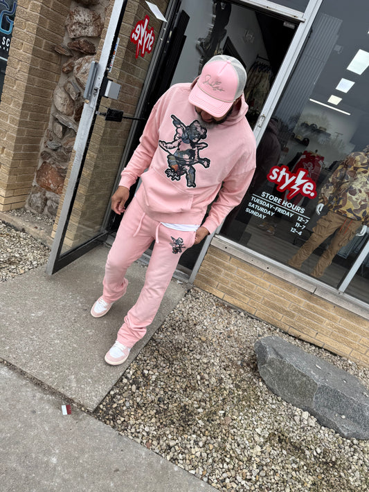 StyleGods Angel Pullover Stacked Jogging Suit - Pink