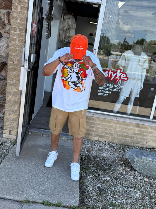 StyleGods Paint Angel Crewneck SweatShirt - Tan\Orange
