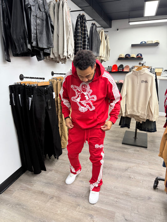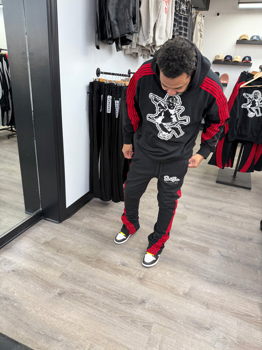 StyleGods Pullover Stacked Jogging Suit - Black\Red\White
