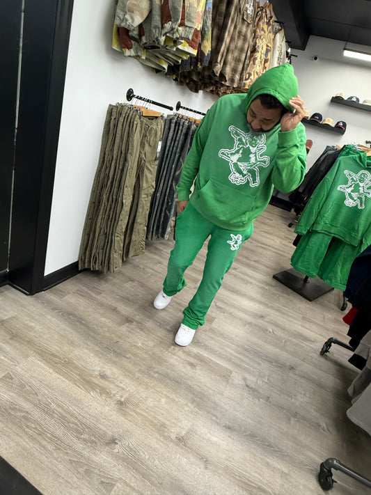 StyleGods Angel Pullover Stacked Jogging Suit - Kelly Green