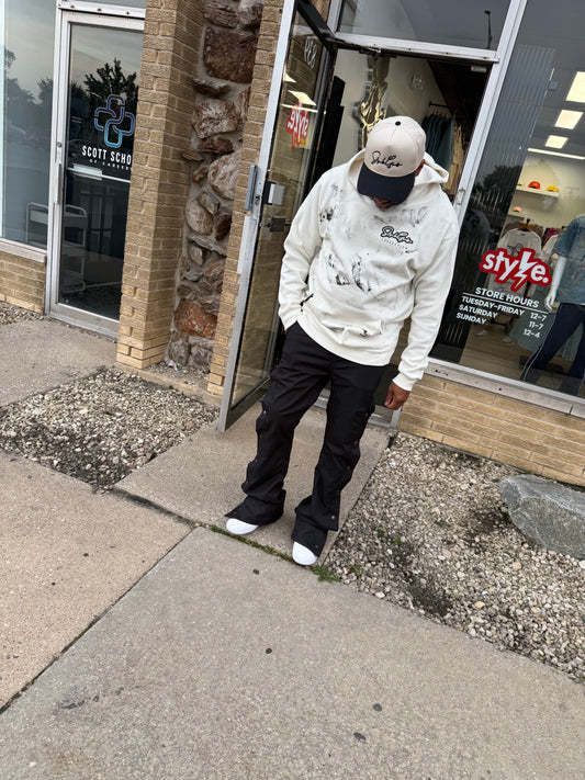 StyleGods Signature Paint Oversized Hooded SweatShirt - Cream\Black