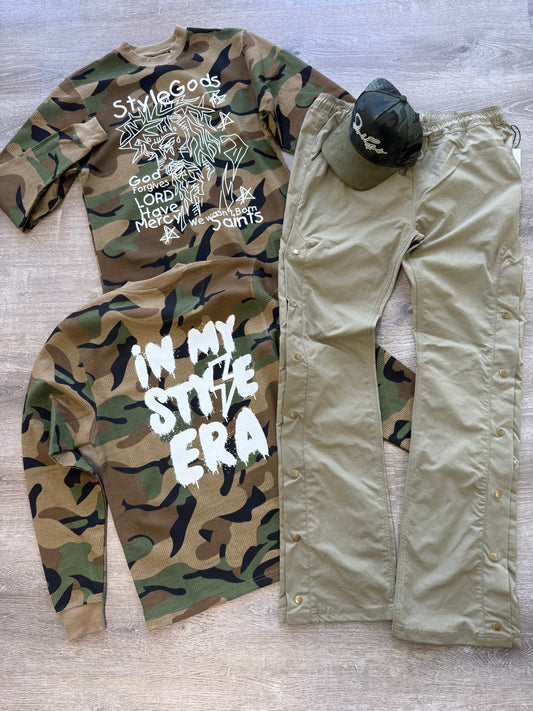 StyleGods Jesus Piece Crewneck Thermal Shirt- Camo