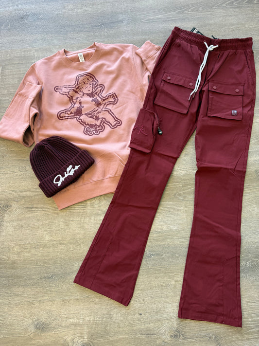 StyleGods Pullover Stacked Jogging Suit - Red