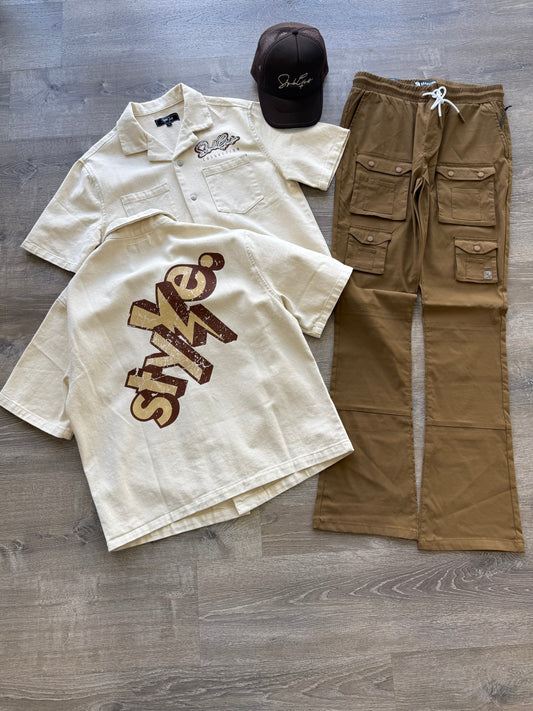Quilted Stacked Cargo- Tan