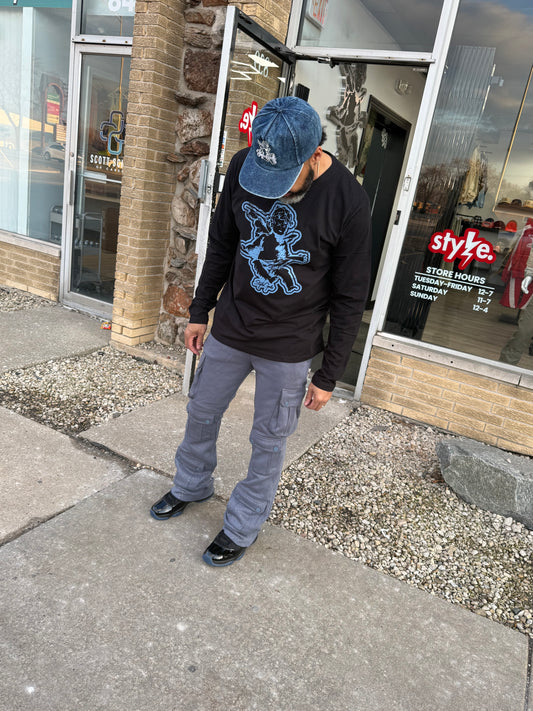 Quilted Stacked Cargo- Black