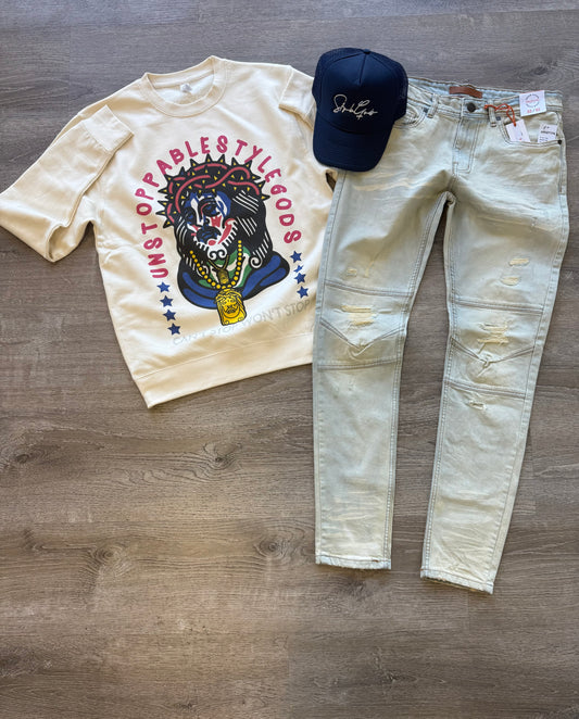 StyleGods Jesus Piece Crewneck SweatShirt - Tan