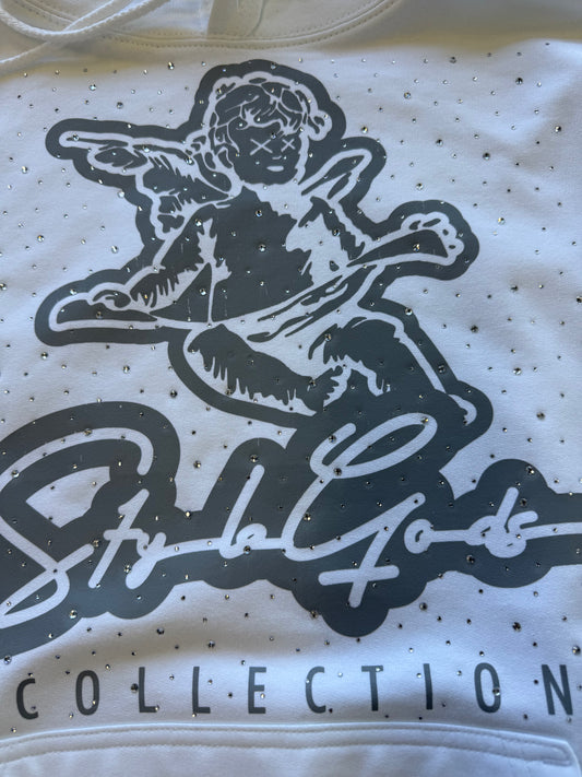 StyleGods Angel Rhinestone Hooded SweatShirt - White\Grey