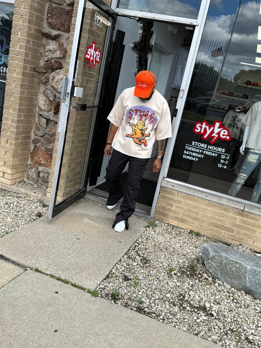 StyleGods Angel Oversized Crop T - Off White\ Black