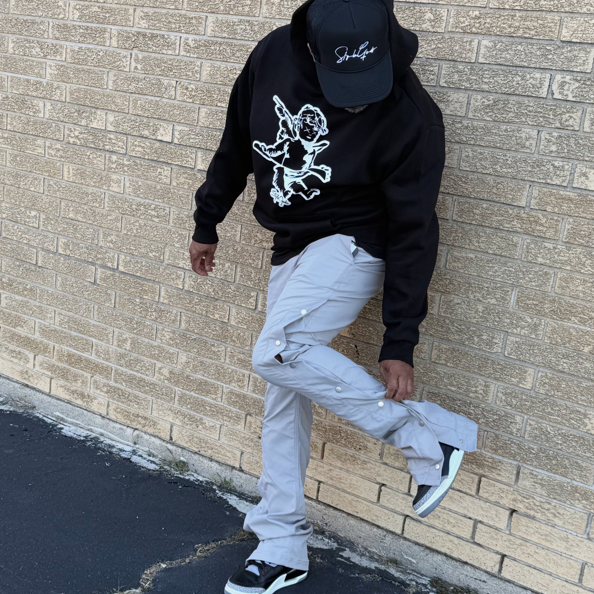 Copper Rivet NYLON Stacked Snap Pants Grey