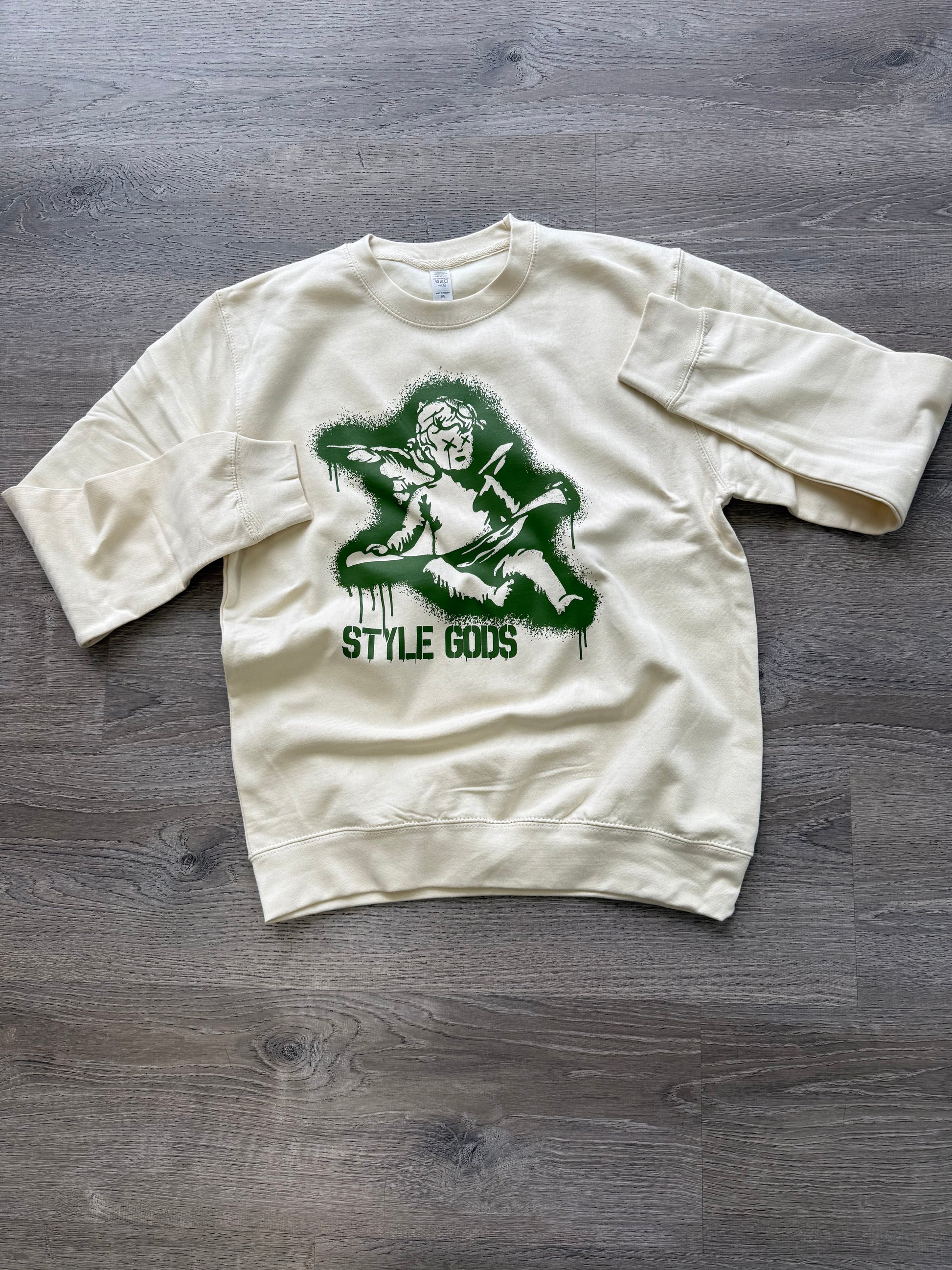 StyleGods Paint Angel Crewneck SweatShirt - Tan\Olive