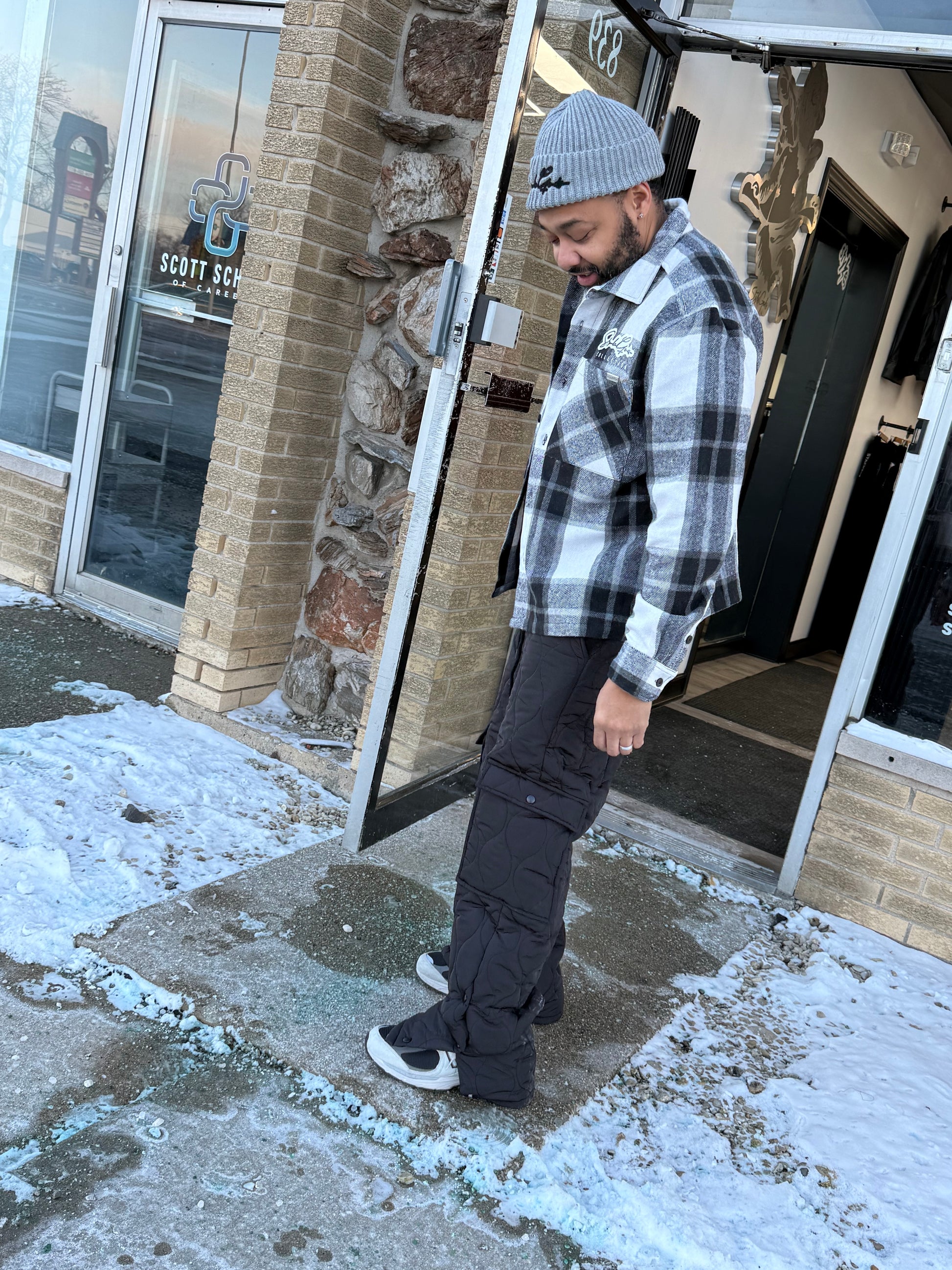 Quilted Stacked Cargo- Black