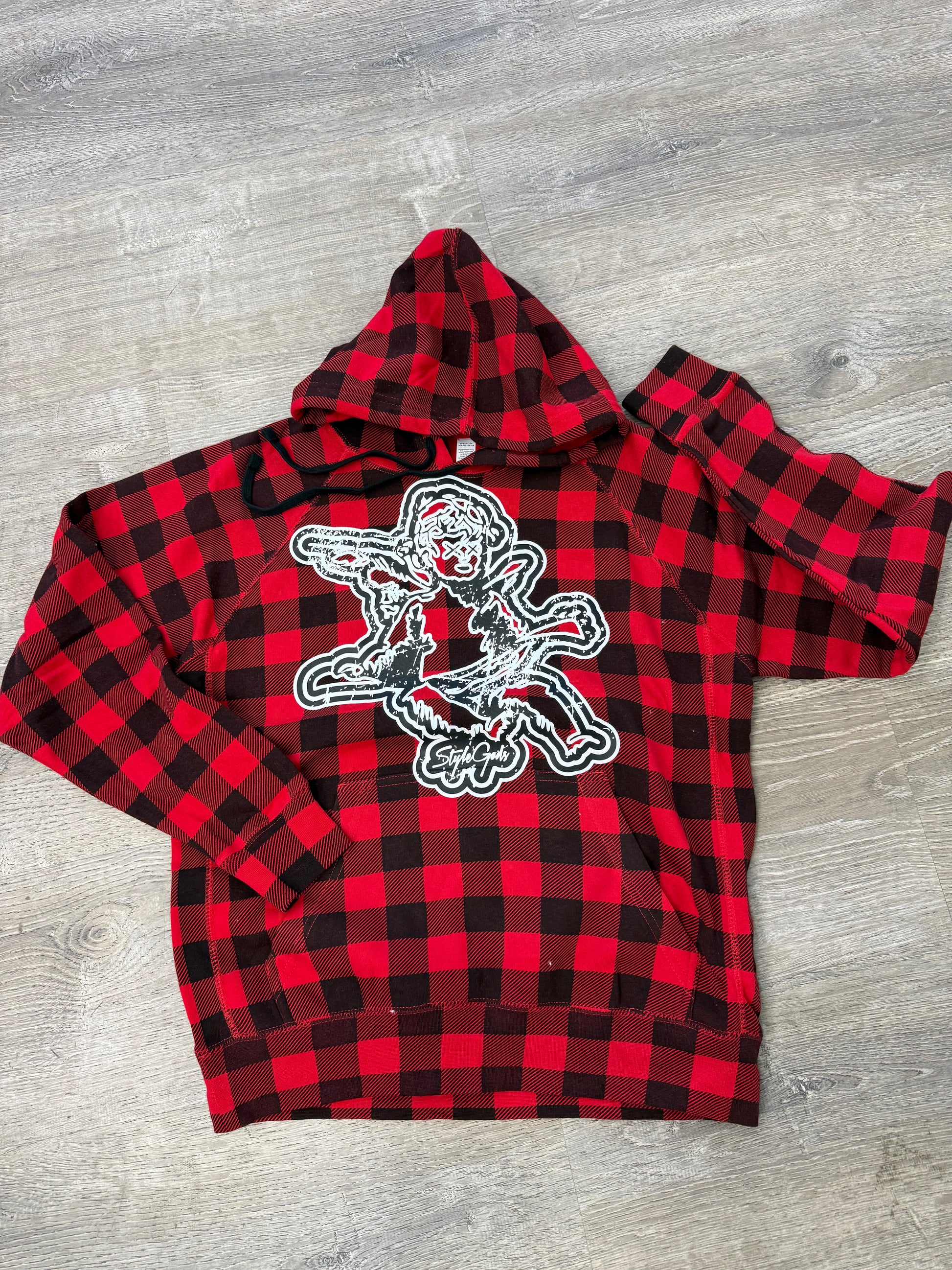 StyleGods Angel Plaid Sweatshirt Hoodie - Red/Black