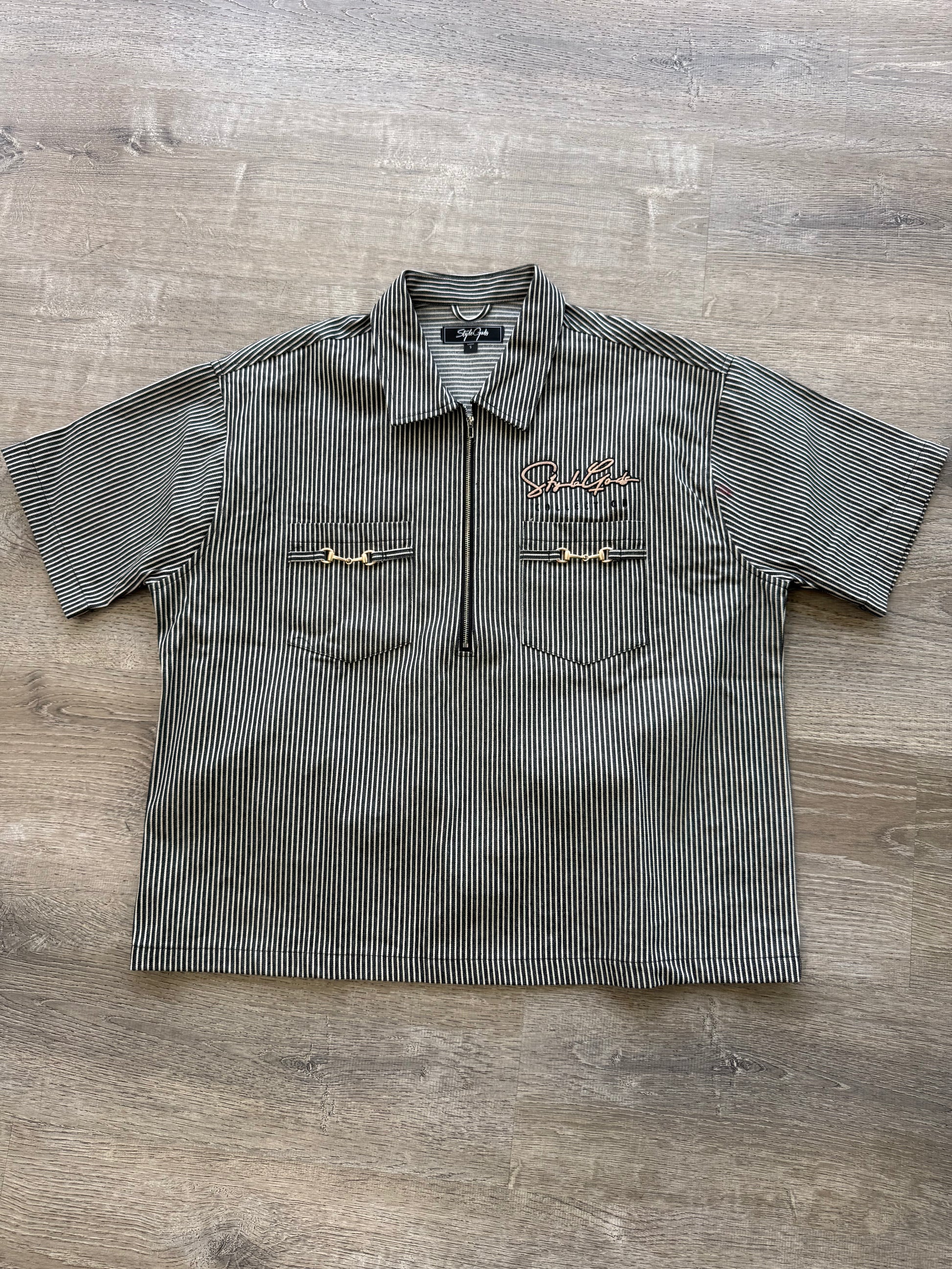 - StyleGods Denim Crop Quarter Zip- Black\White