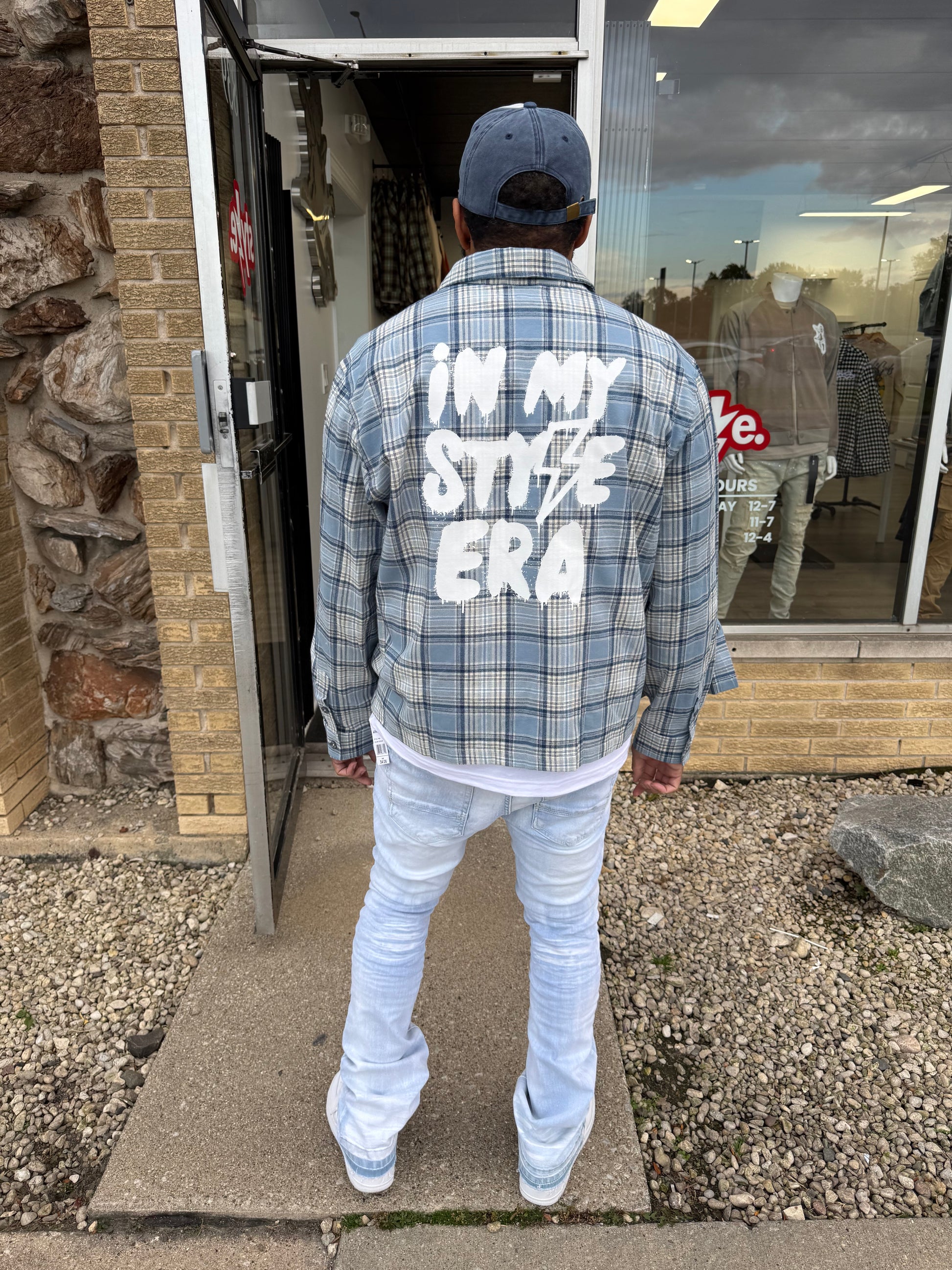 StyleGods Flannel Crop Shirt - Navy\White\Baby Blue