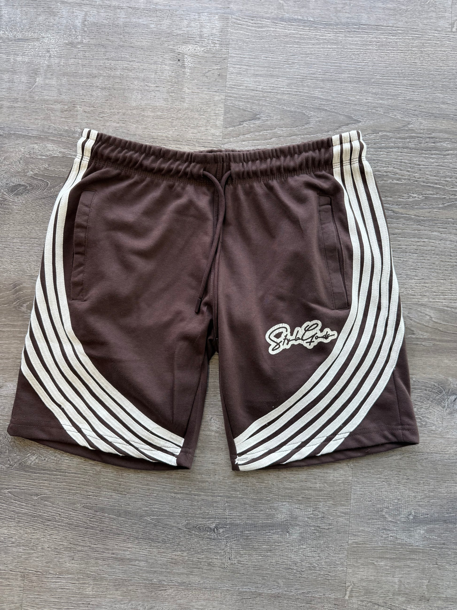 StyleGods Fleece 6 Stripe Shorts - Brown