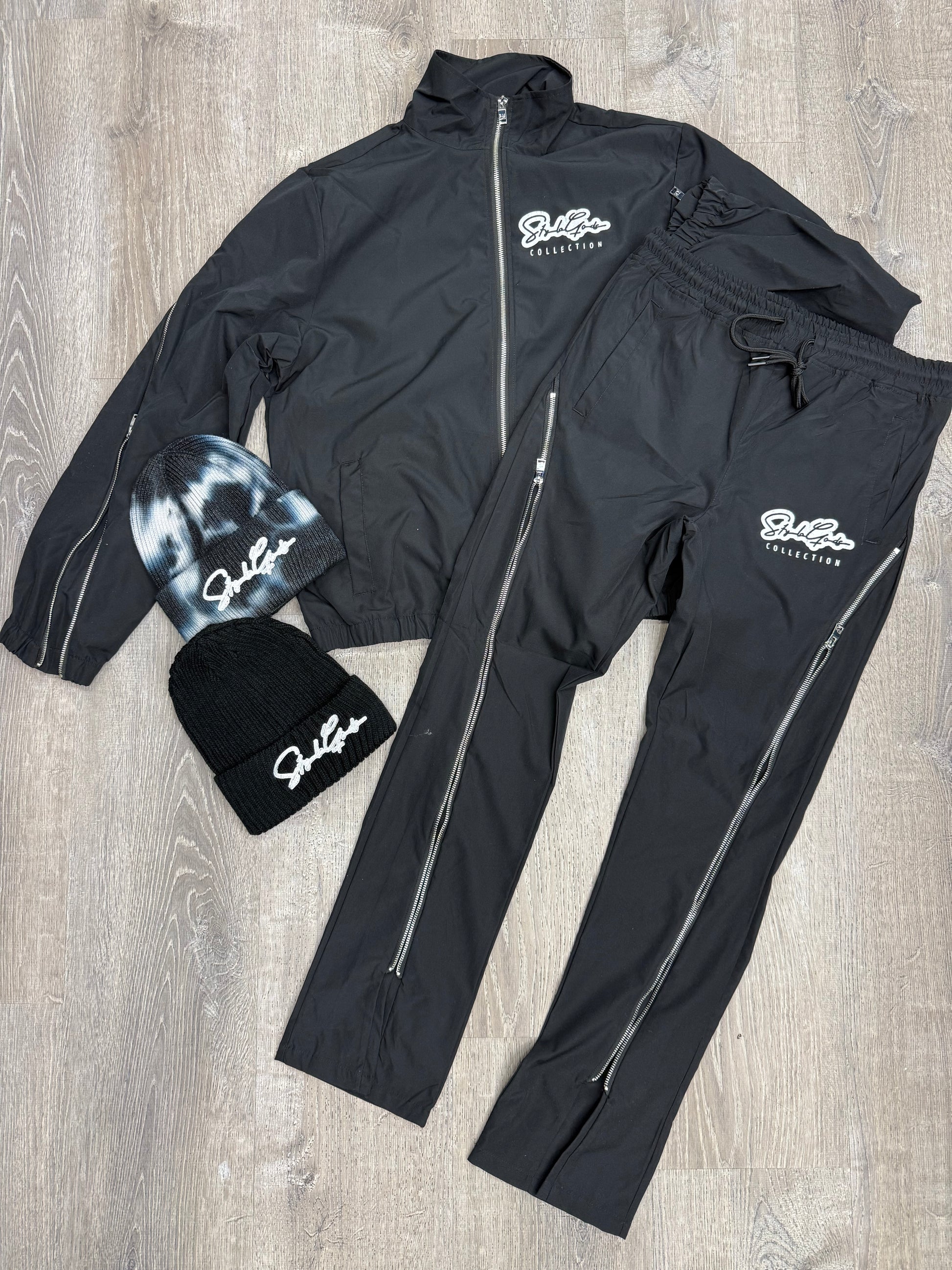 StyleGods Zip up Stacked Nylon tracksuit - Black